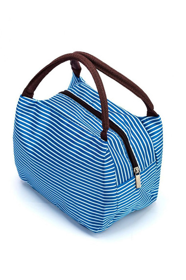 Фото товара 17044, термосумка для ланч-бокса в полоску «горячий обед» синяя